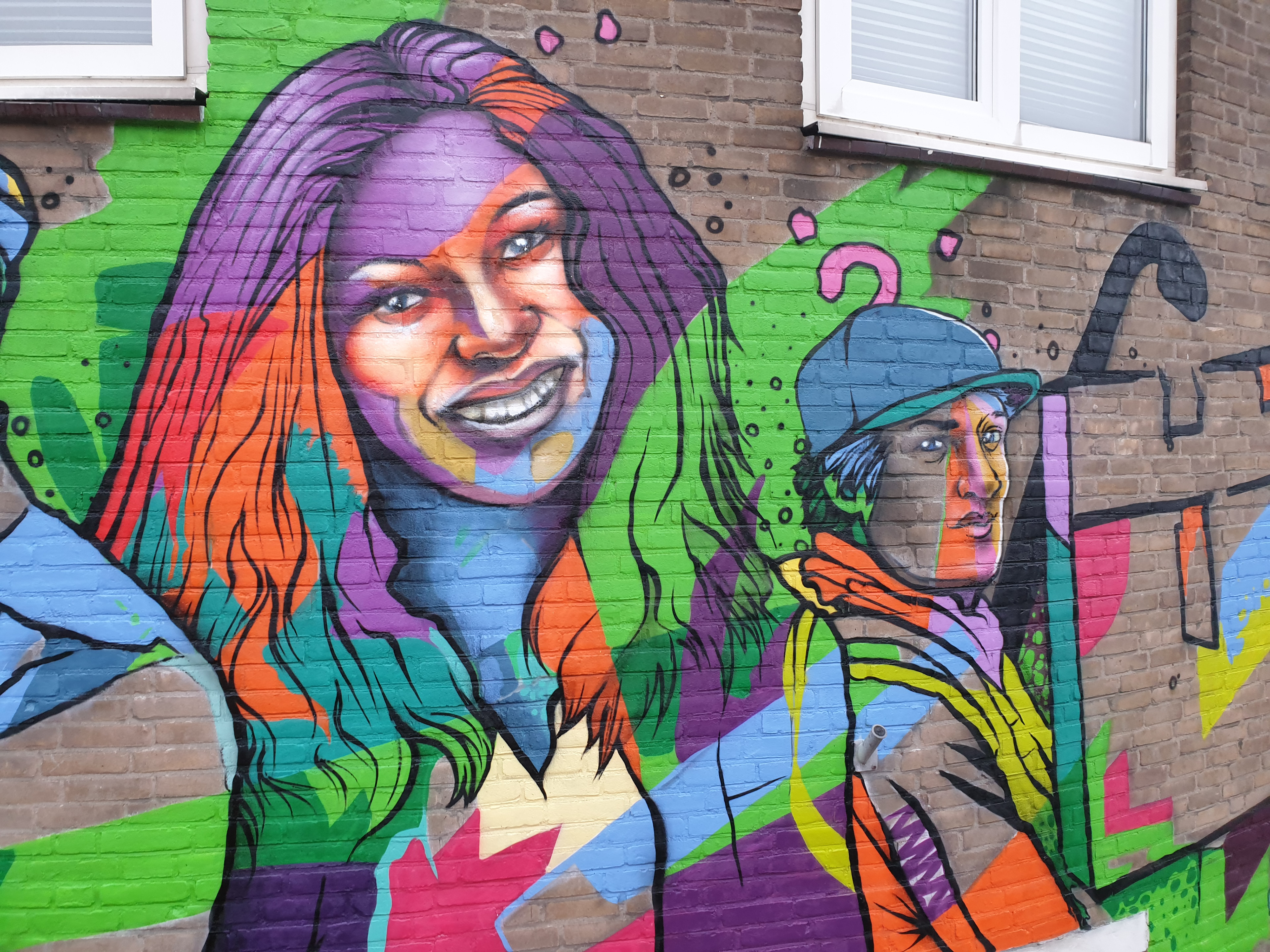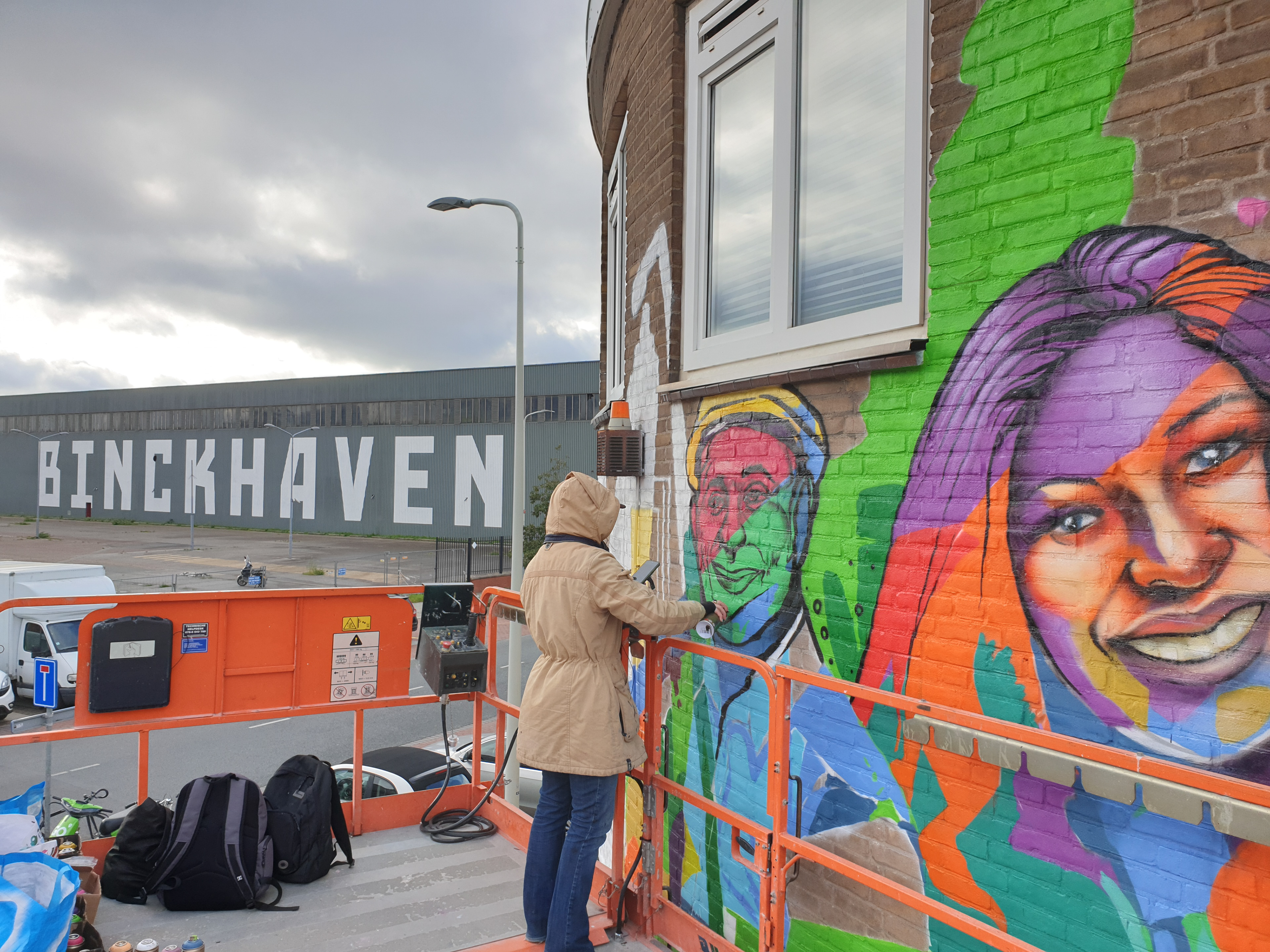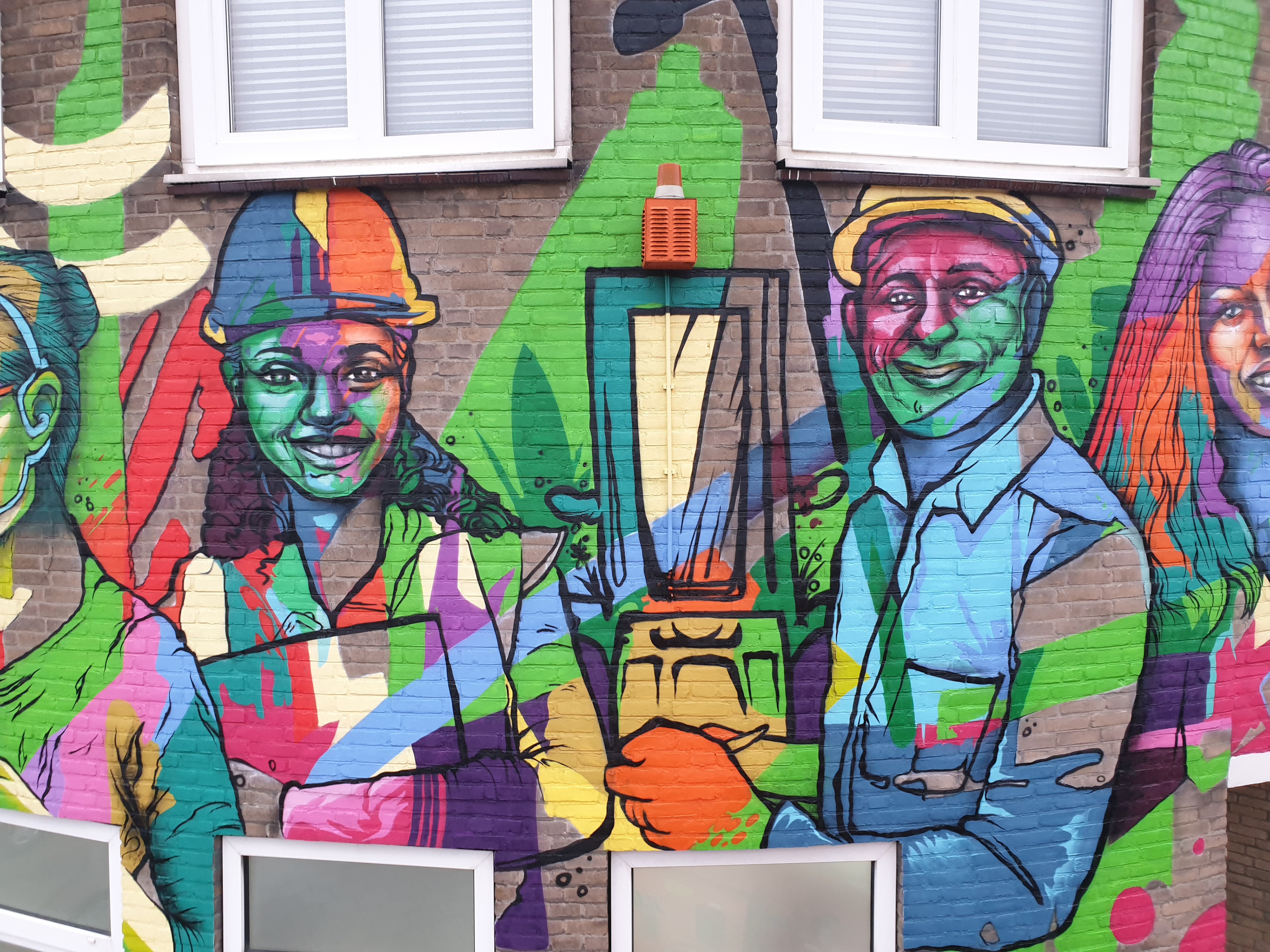 Mural project for Green Fox Social Return in Binckhorst, Den Haag. Mural design and painting by Zesta and Page33 in collaboration with StreetArtProjectsNL.
