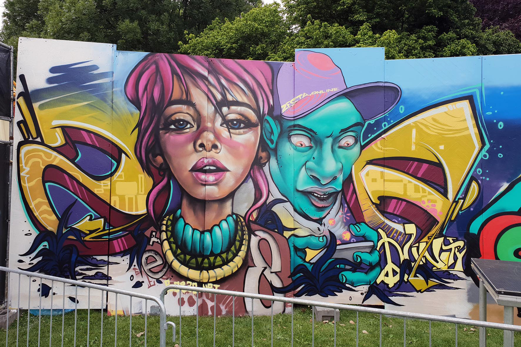 The graffiti piece says Zesta, (the T is on one of the front teeth), and is also in an abbreviation form as "Z -SA", or "Zesta - South Africa".